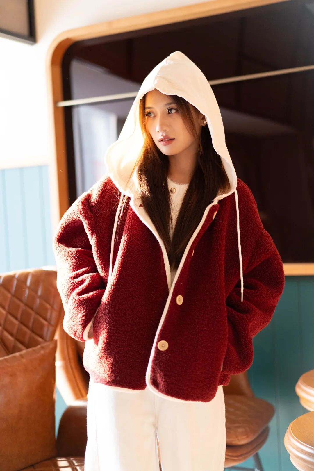 它也是新年红的底色,裹上它赴年终派对,暖光里毛绒绒的轮廓自带柔焦滤镜。