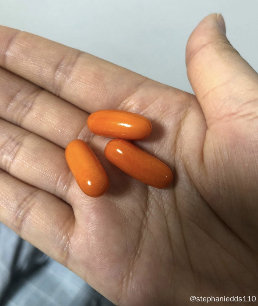 用法用量:每天一粒,随餐服用,橙色胶囊,不特别大颗。