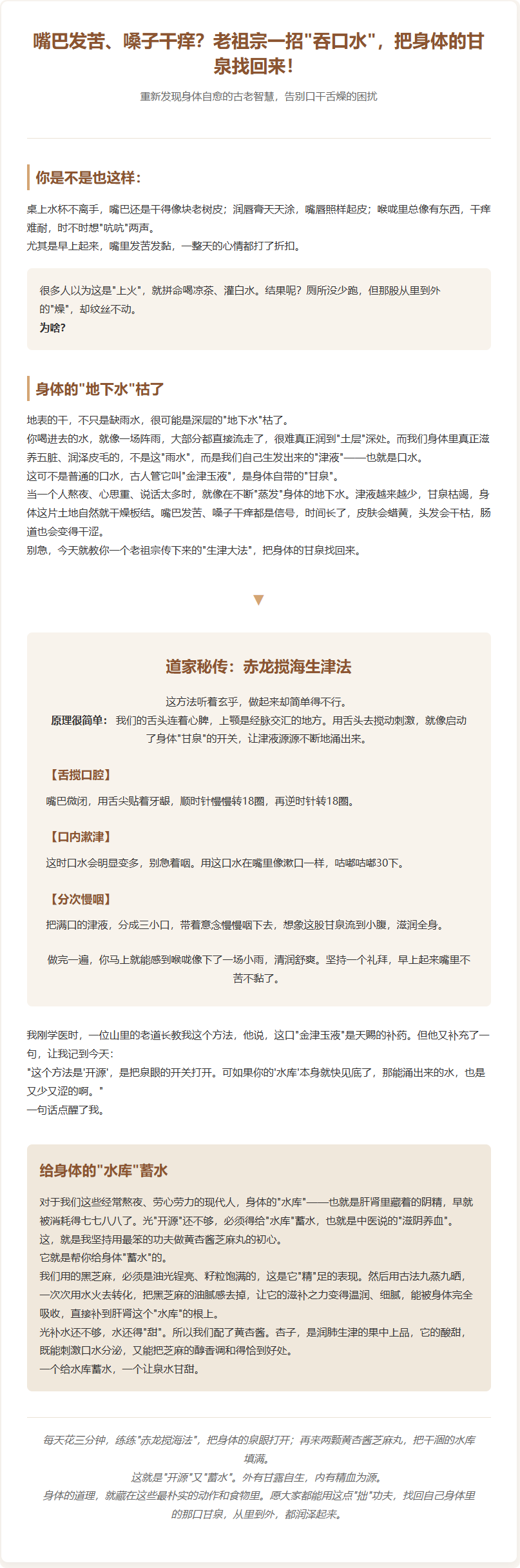 嘴巴发苦、嗓子干痒?老祖宗一招"吞口水",把身体的甘泉找回来!