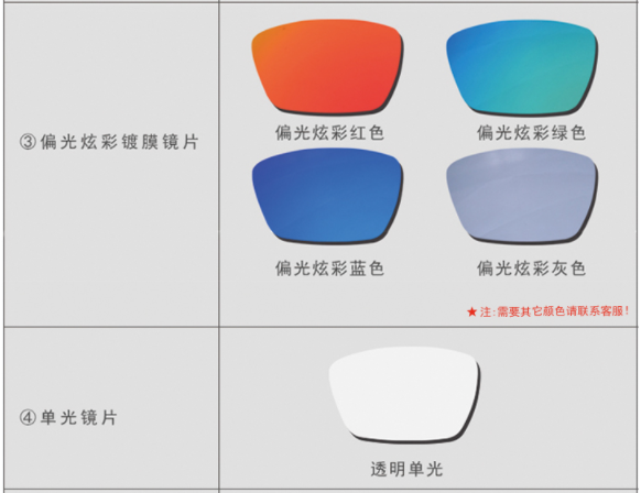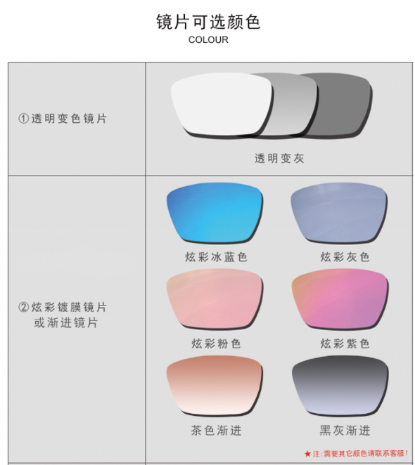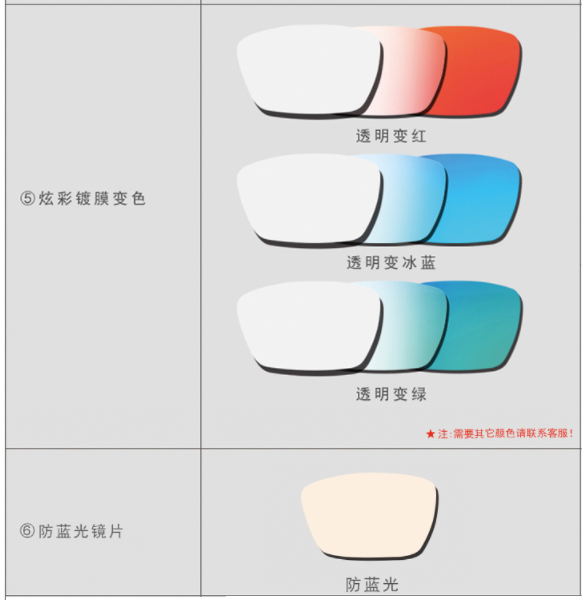 PH008镜片共有5种选择。根据个人需要,选择了 炫彩镀膜变色。选择理由是为了户外跑步再也不用携带2副眼镜。