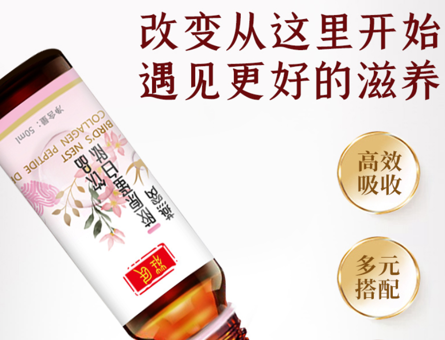 女性25岁之后,胶原蛋白流失得比以前快,所有睡前喝一杯口服液,不但改善你睡眠肠道entity,还能改善肌肤,让肌肤也能细腻光滑。浓缩精华燕窝胶原蛋白肽一瓶富含多重营养成分,排毒养颜,美容瘦身随身携带开盖即饮,随时随地补充一天所需维生素营养,开启健康生活。