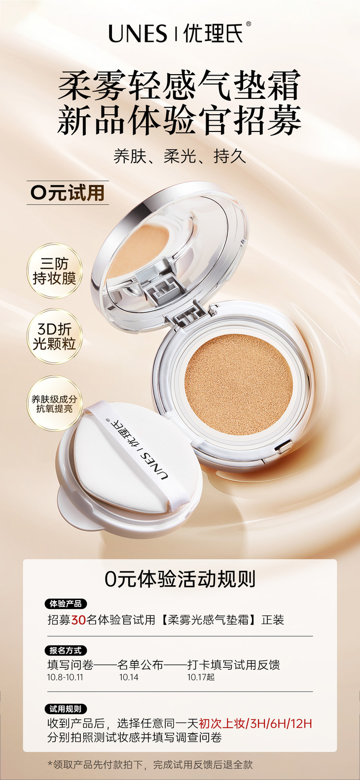 招募 ▏0元体验柔雾轻感气垫霜新品
