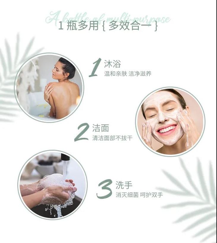温和亲肤,保留了皂质清洁能力的同时不会带走肌肤内多余的水分。洗手、洗澡甚至洗脸都可以用,真正的一瓶洗完全身!