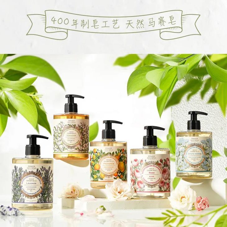 南法庄园马赛液体皂足足有3个系列,12种香型。每种香型不仅有专业的前调、中调、后调,还有各自的功效。