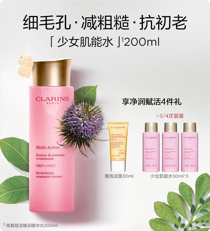 此外,我们也申请到了75ml版本双萃精华单独的活动,价格给力,配赠到位!黄金双萃精华75ml,活动价1260元,送价值897元的5件御龄焕颜好礼(双萃精华20ml+粉泡沫洁面30ml+小姐姐弹簧水50ml*3),低至5.1折,领1000-150元专享券,券后价1110元!还能保底获得价值500元的美白套装,内含言之有物熬夜精华7支*2+传明酸精华乳100ml+言安堂优选晴雨防晒伞1把!保底打包折扣相当于4.4折。随着成分党们的高速进步,很多人对于爽肤水越来越不重视了。其实根源上而言,这和市面上有太多以次充好,配方寡淡,甚至是靠增稠剂调节出“富含丰富活性成分”假象的爽肤水产品密不可分。而一直以来强调以精华水开启护肤的第一步的娇韵诗,针对不同年龄段、不同肌肤诉求研发了一系列的精华水,这次上到娇韵诗青春赋活精华水&娇韵诗焕颜紧致精华水就是这个系列里的产品。正确使用爽肤水,不仅能在洁面之后迅速浸润舒展角质,还能优化后续产品的使用感和功效,一定程度上帮助后续产品中活性物发挥作用。年轻肌肤,皮脂分泌活跃,有时候甚至会有皮脂过氧化导致的各种问题。所以,娇韵诗青春赋活精华水就是一瓶对抗皮脂过氧化和平衡肌肤油光为主的精华水。独家的野续断提取物(也就是起绒草),富含植物多酚,抗氧化的同时兼顾减少肌肤的微炎症损伤。配合凹缘金虎尾(针叶樱桃)籽提取物,强化这款爽肤水的抗氧化能力。配合一些娇韵诗爱用的植物成分,比如提拉紧致的燕麦仁提取物,舒缓保湿的晚香玉多糖;还有糖精们都认识的密罗木叶/茎提取物,其核心就是甘油葡糖苷,保湿、修护根本不在话下,而且能够对抗外界污染带来的肌肤压力,减少脂质过氧化等。配方的最后,还少量点缀了两个一代果酸,经典的羟基乙酸和类天然保湿因子的乳酸,强化这支精华水减少肌肤油光油腻的作用。所以这款“少女精华水”对轻度的闭口粉刺也有帮助,一方面是减少了脂质过氧化导致的微痤疮问题,一方面抑制了过度分泌的皮脂。