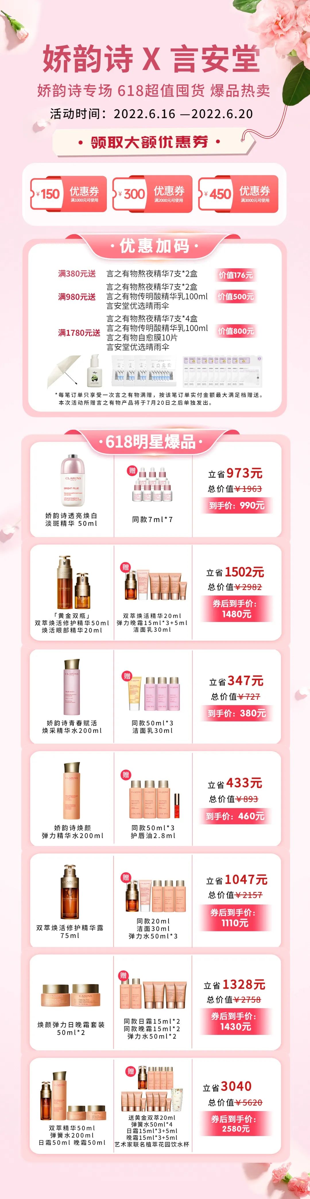 这次618盛宴,言安堂和娇韵诗牵手啦!为糖精们带来了涵盖美白、抗老、维稳修护等多个诉求的产品!