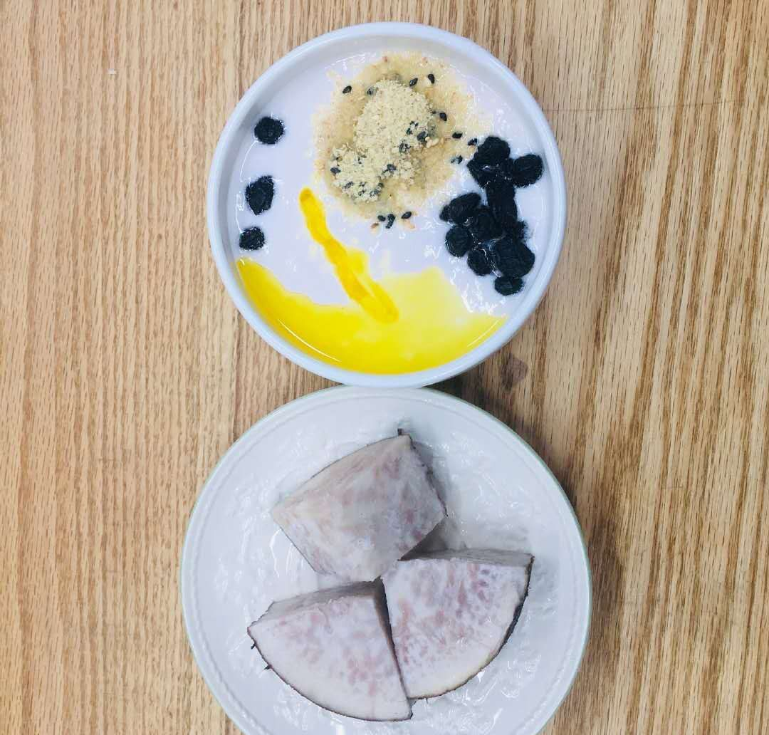 200ml自制无糖酸奶,加入15ml亚麻籽油、5克啤酒酵母一起食用。