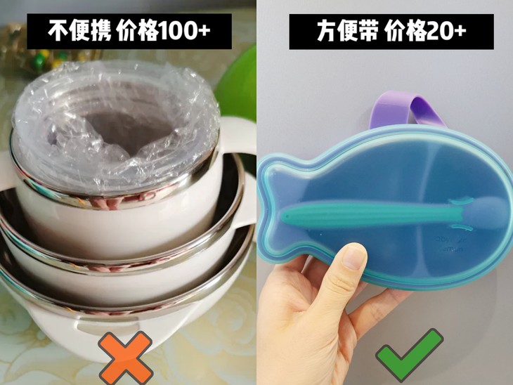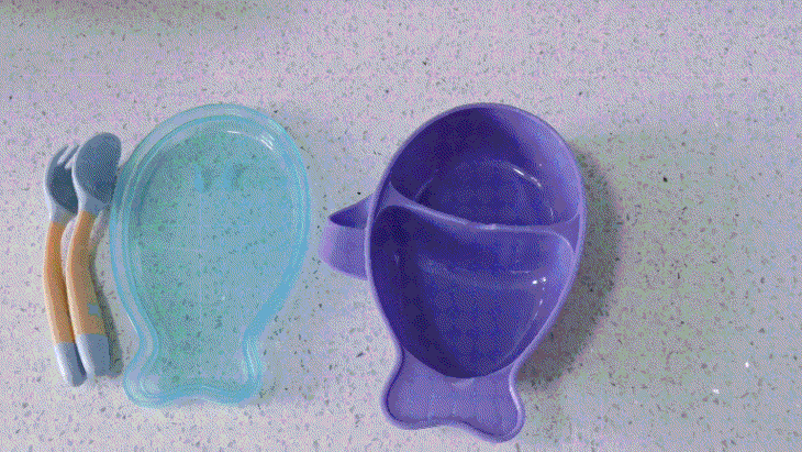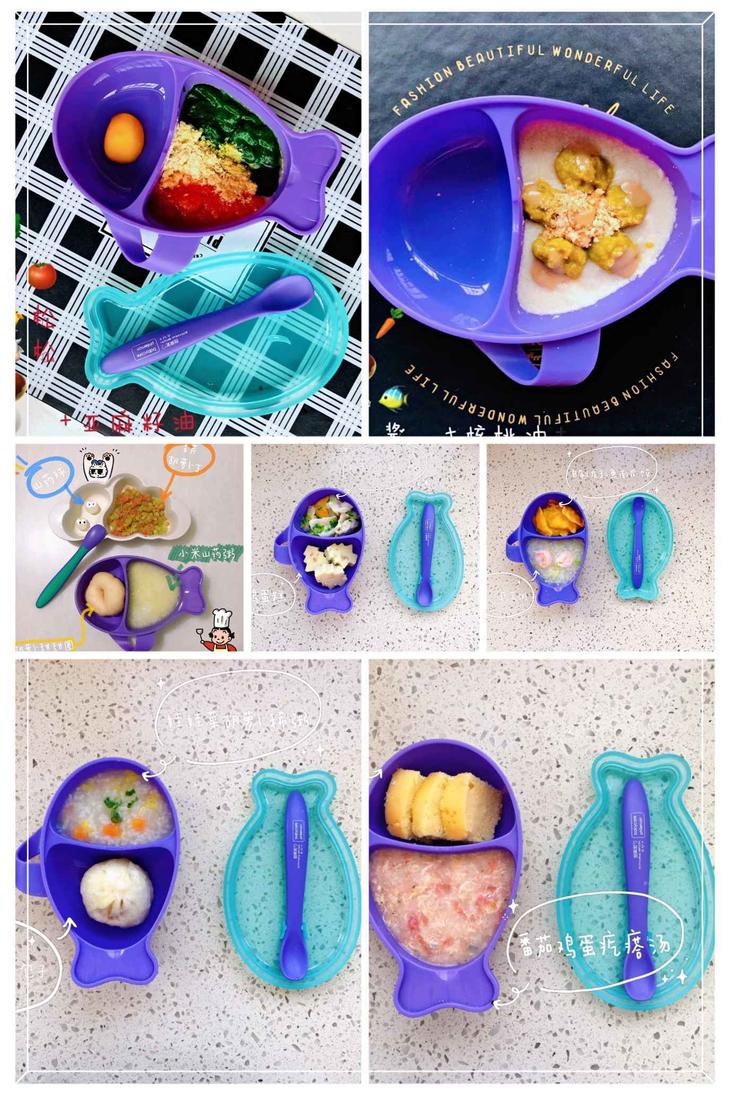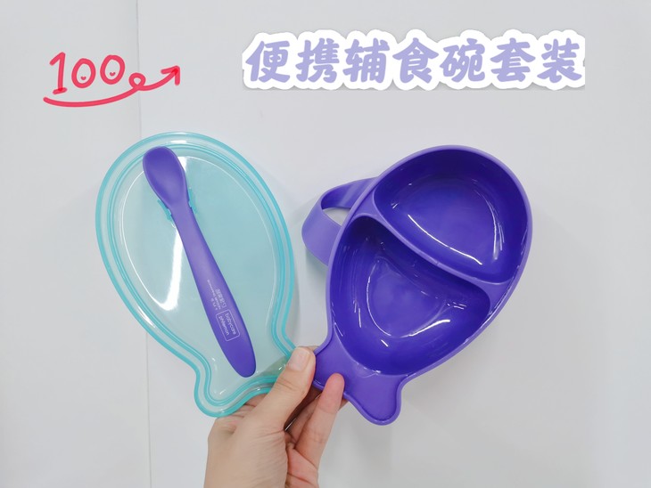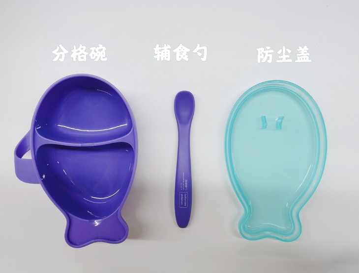 它有1个辅食碗,1把辅食勺和1个防尘盖,