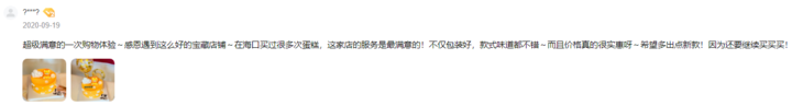 在海口买过很多次蛋糕,这家店的服务是最满意的!不仅包装好,款式味道都很不错~