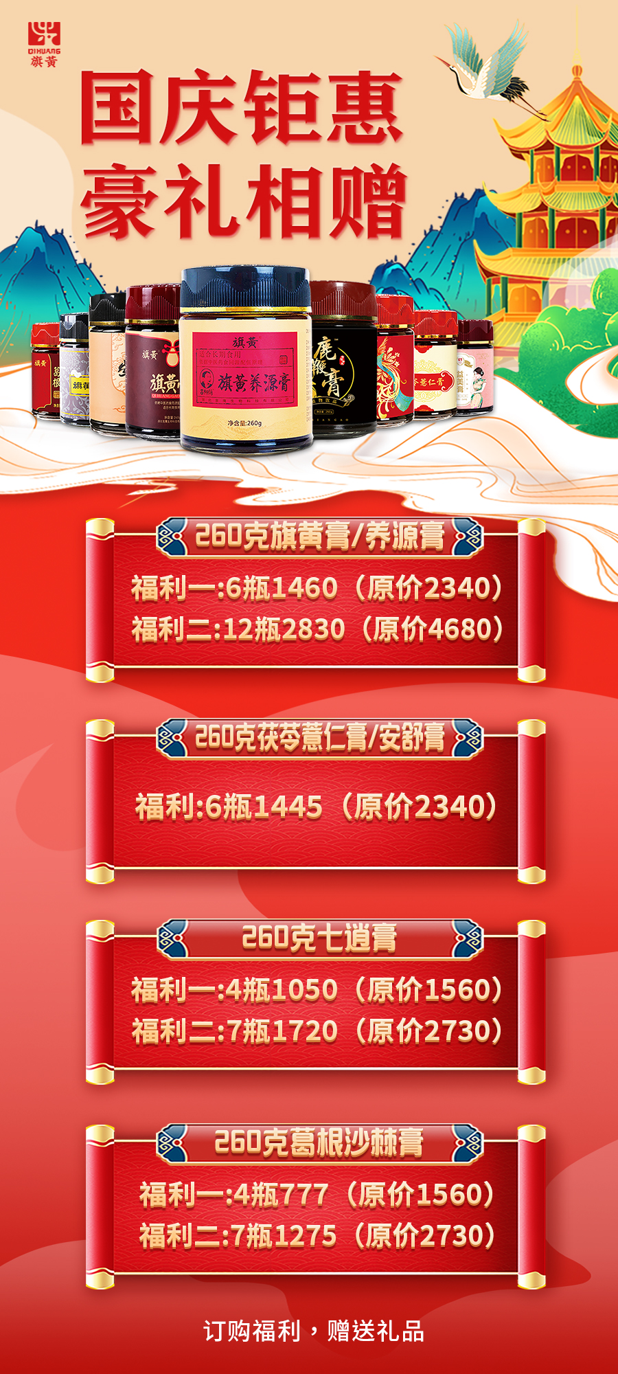 而且,旗黄针对各种人群需求,开发不同类型的膏滋,有补肾养精的、养血调经的、安神促眠的、润肺止咳的、补脾祛湿的、养肝降火的……等等,满足您秋冬滋补全方面需求,为您和家里的老人、孩子带去健康的福音!