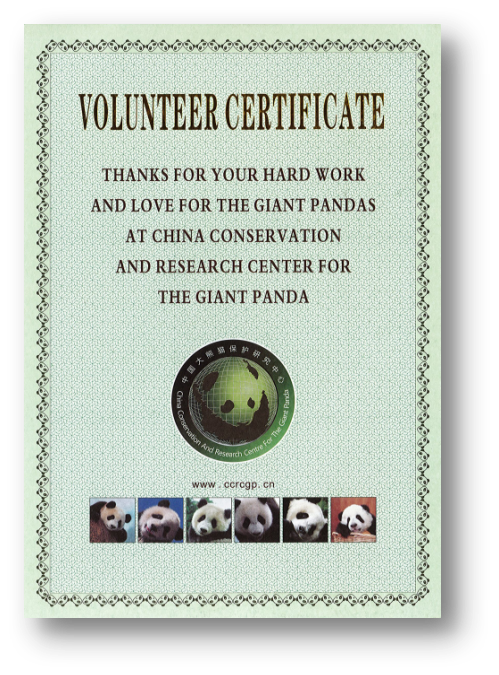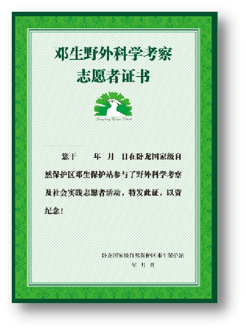 收获证书展示(从左至右):《志愿中国服务记录证明》/《保护区社会实践证书》/《大熊猫志愿者证书》