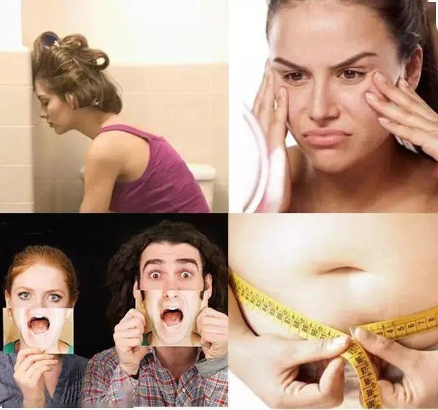 大量油腻,冷饮入体,打乱肠胃菌群平衡,下损伤肠胃吸收,腹泻口臭 ,上侵害皮肤,长疮长痘!