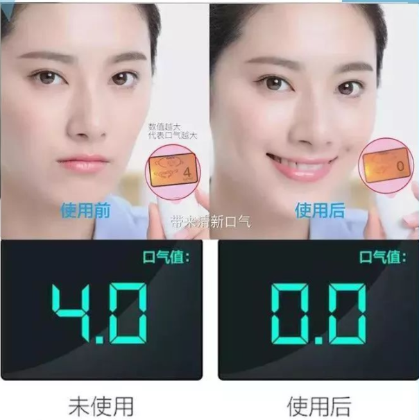肠道毒素消失,消化正常,再也不胀气难受,口臭直接消失,用了专业口气测试仪器,用了肠胃保健贴之后,从巨臭的4,变成口气清新的0!