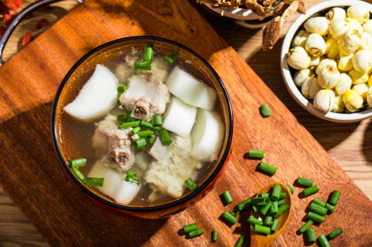 萝卜具有很强的行气功能,含有大量水分,营养丰富,萝卜汤是冬季养生保健的首选。萝卜还能吸附油脂,有解除油腻的功效。萝卜与排骨同煮,可以健胃理气,补肾养血,可起到进补和防寒的双重效果。