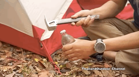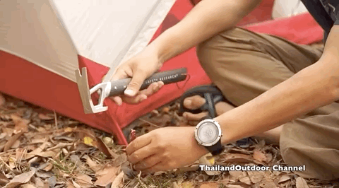使用营地锤打地钉会轻松很多,也可以保护地钉,@@ThailandOutdoor