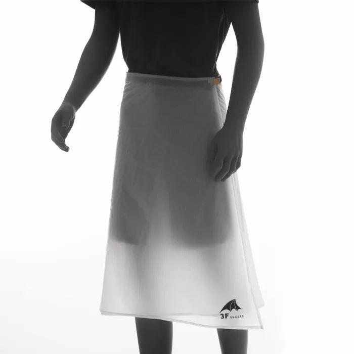 户外雨裙一般是由一块扇形防水面料和腰间调节装置组成,轻至几十克,下端开口设计保证行走时不会闷热。