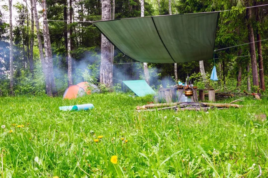 一块方形、菱形或多边形的篷布与挂点、风绳的组合就是天幕,在营地,通过它与地钉、树木的配合,不仅遮阳避雨,它的多变造型还会为你带来多种功用: