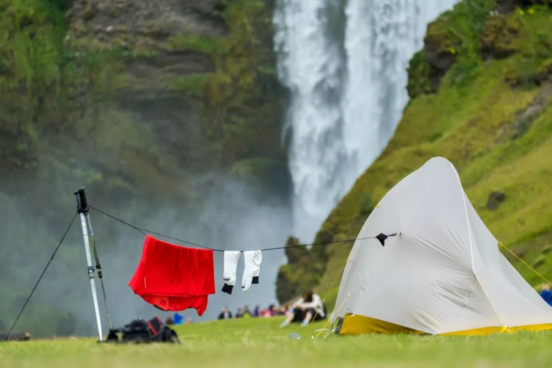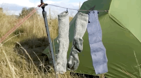 早晨出发前或者是到营地后,把湿衣物拧干、晾好,不仅干得快更卫生,而且让你的“小家”内更整洁有序。