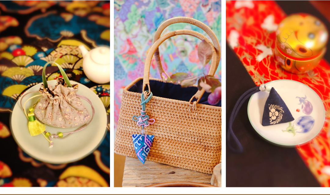 市面上香囊虽多,但根据五运六气理法,不同时间,不同组方的却不多。而且恰好有一位三和善友,是位旅日设计师,在手作和传统文化方面都有很深的造诣。