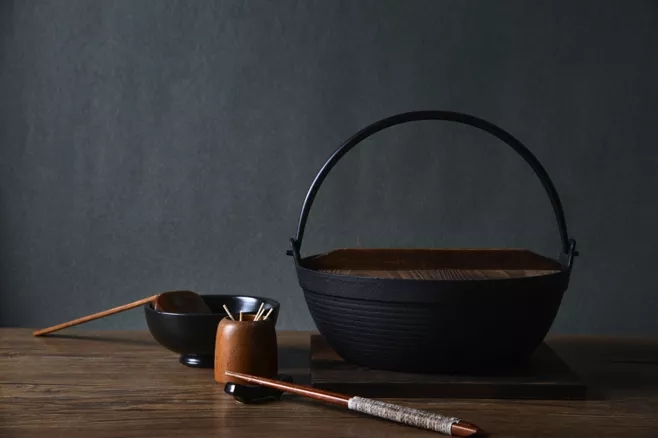寿喜锅的锅身大致有两层,内层的是生铁层,外层的珐琅层