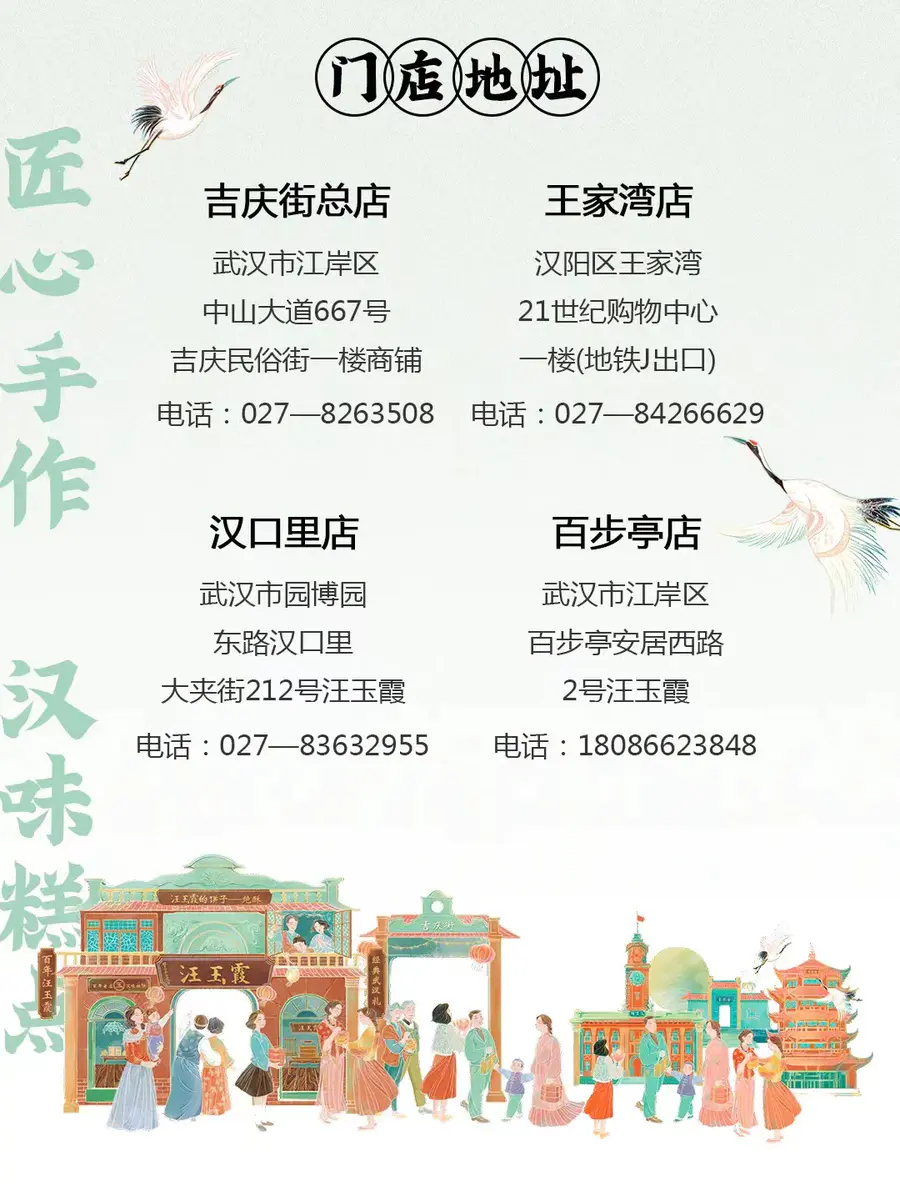 汪玉霞最具特色产品:碱酥饼、老桃酥、绿豆糕、琪玛酥、月饼、云片糕、京果、酥糖、喜饼,酥饼等;跨时代而弥新,成为武汉必选的城市礼物。