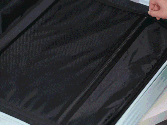 中间还有一个网格收纳袋,可用来放置充电器、钱包等这类小物件~