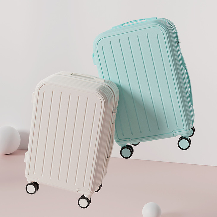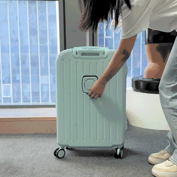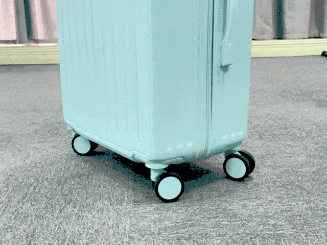 这款行李箱底部采用静音万向轮,360°灵活转动。