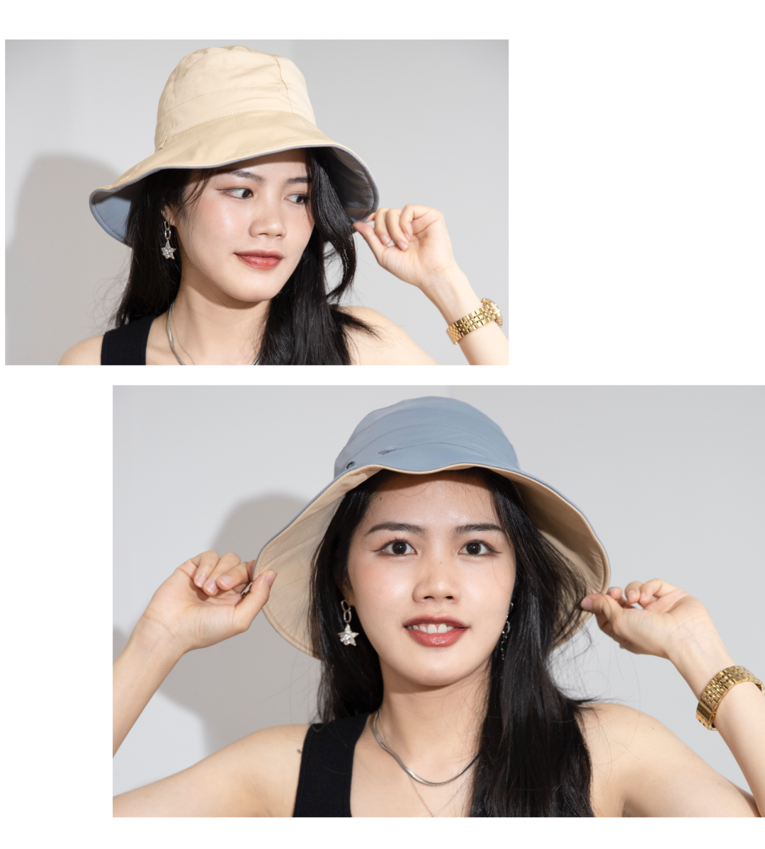 我因为头大而且额头特别高,加上后脑勺扁扁的,又是个圆脸,对帽子特别挑剔,这款帽子完全不挑头型,还特别显脸小,随便一套就可以出门。它是双面可戴的,两面异色,相当于拥有了两顶帽子,随意看着搭配来切换颜色,不想洗头化妆的时候就用它变时髦。