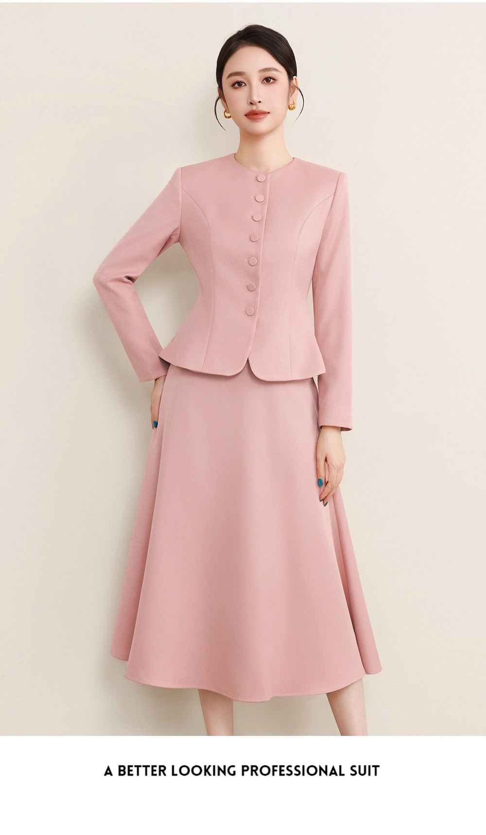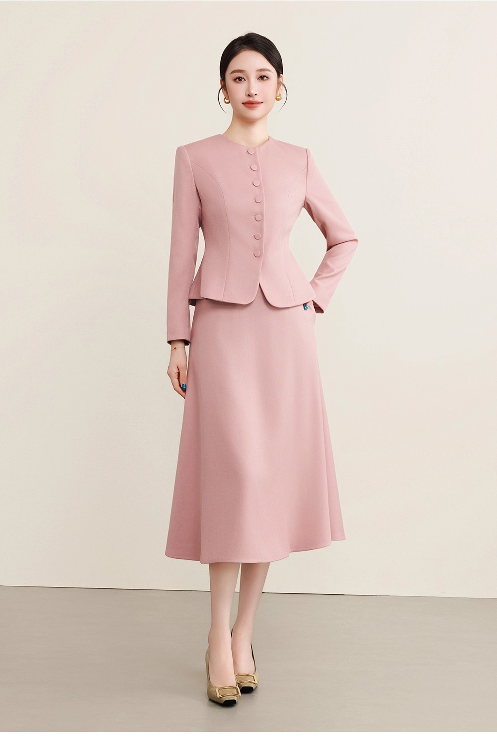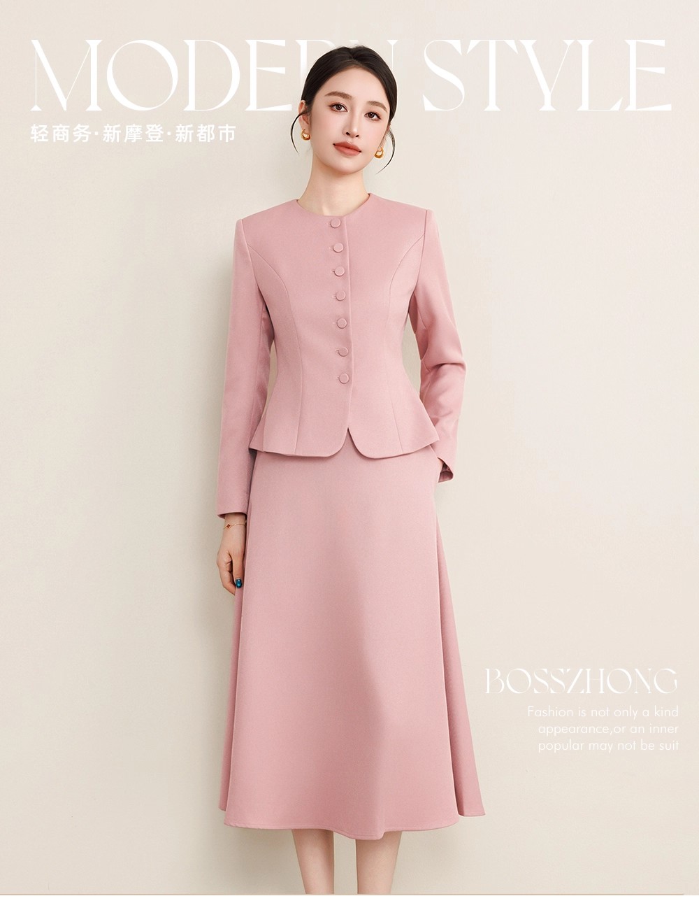 这套粉色套装便有了独特的时光叙事感。