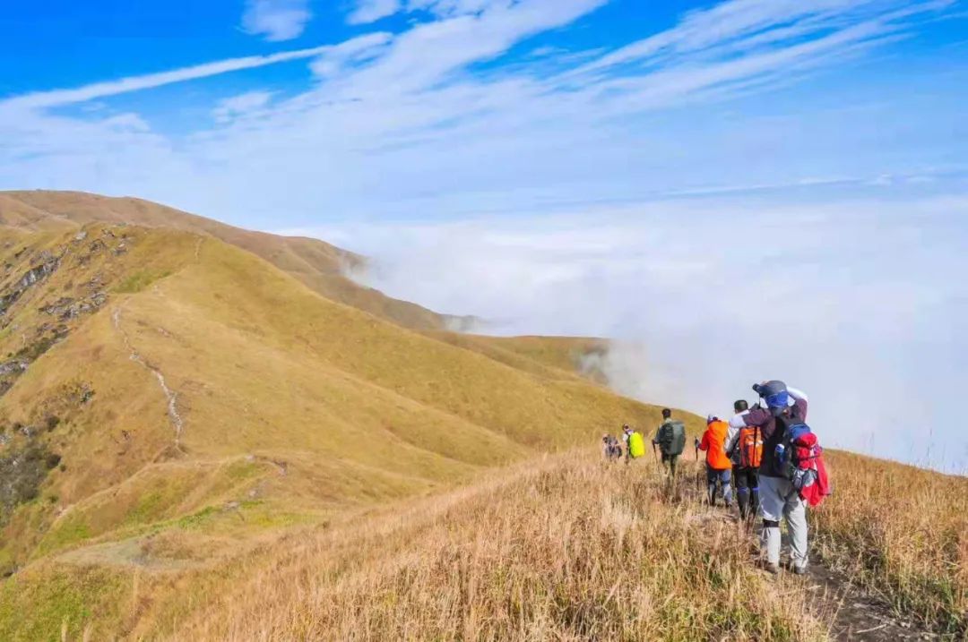 秋日的武功山,不单有高山草甸,更有红叶,一春一秋,最是一年中最浪漫的季节,亦是武功山最美的刹那。“万美之中秋为最”。秋天的武功山,是由一条条多彩的山脊,一座座金黄的山峦绘就的。秋天的武功山,漫山的茅草已由绿变黄,芦花已经开出白色的花蕊,草也开始呈现出金黄。