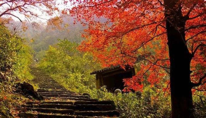 每到秋季,陶宴岭古道边的枫树就会红遍整个山野,沿着古道拾阶而上,真是层林尽染,美不胜收。一路行走于其间,能感受到周围那层林尽染、枫叶飘零的美,以及千百年来在此流传的文人豪气,这样的意境可谓震撼。