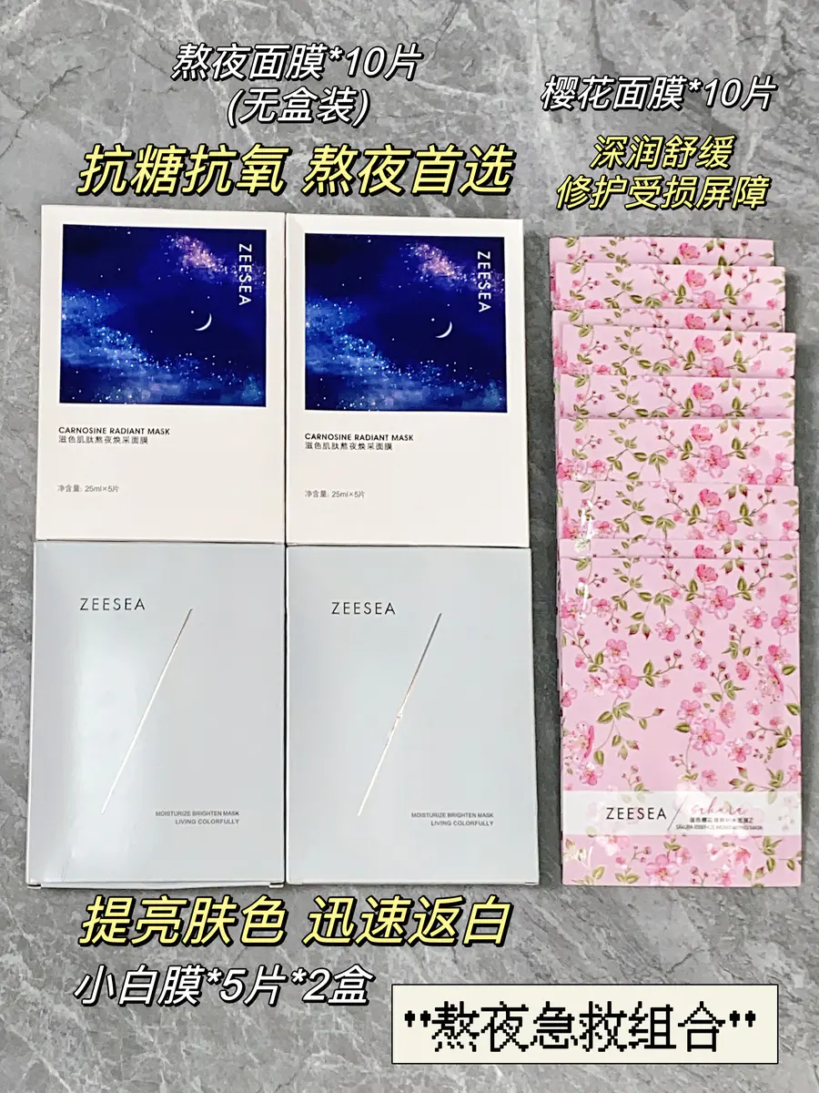 小白膜5片*盒+熬夜面膜5片*盒+樱花面膜5片*盒