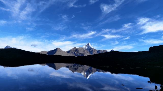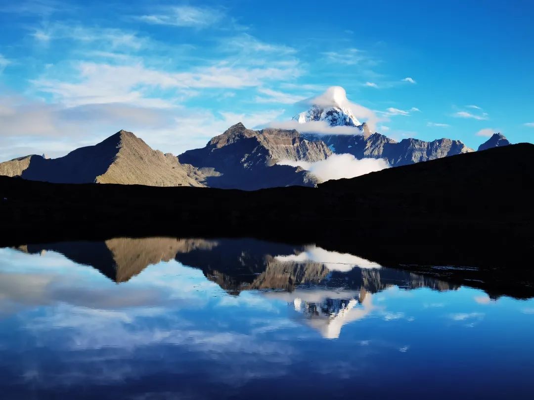 回忆起这趟四姑娘山的徒步之旅,很难再还原当时的心情,但首先难忘的,是 4500 米海拔上雪山倒影带来的视觉冲击。