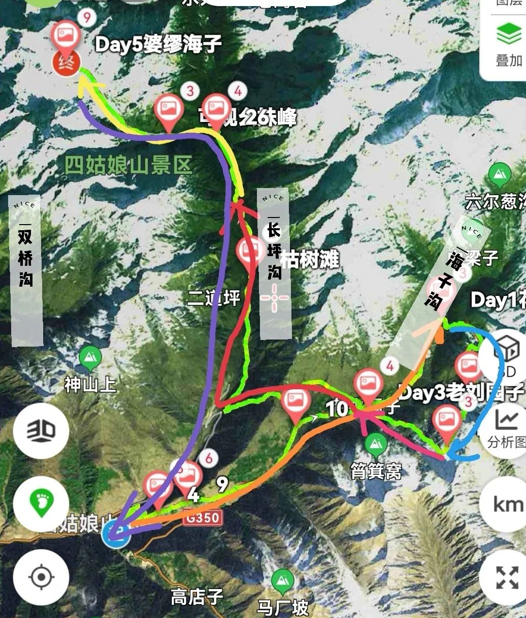 关于四姑娘山海子沟的徒步,或许以下这条路线更适合想要去打卡四姑娘山雪山倒影的驴友,少了未知探路的危险,有更充裕的时间,在绿野山林里呼吸新鲜空气,邂逅雪山海子,等待日出日落,回归到体验本身,而不是成为埋头赶路的行者。