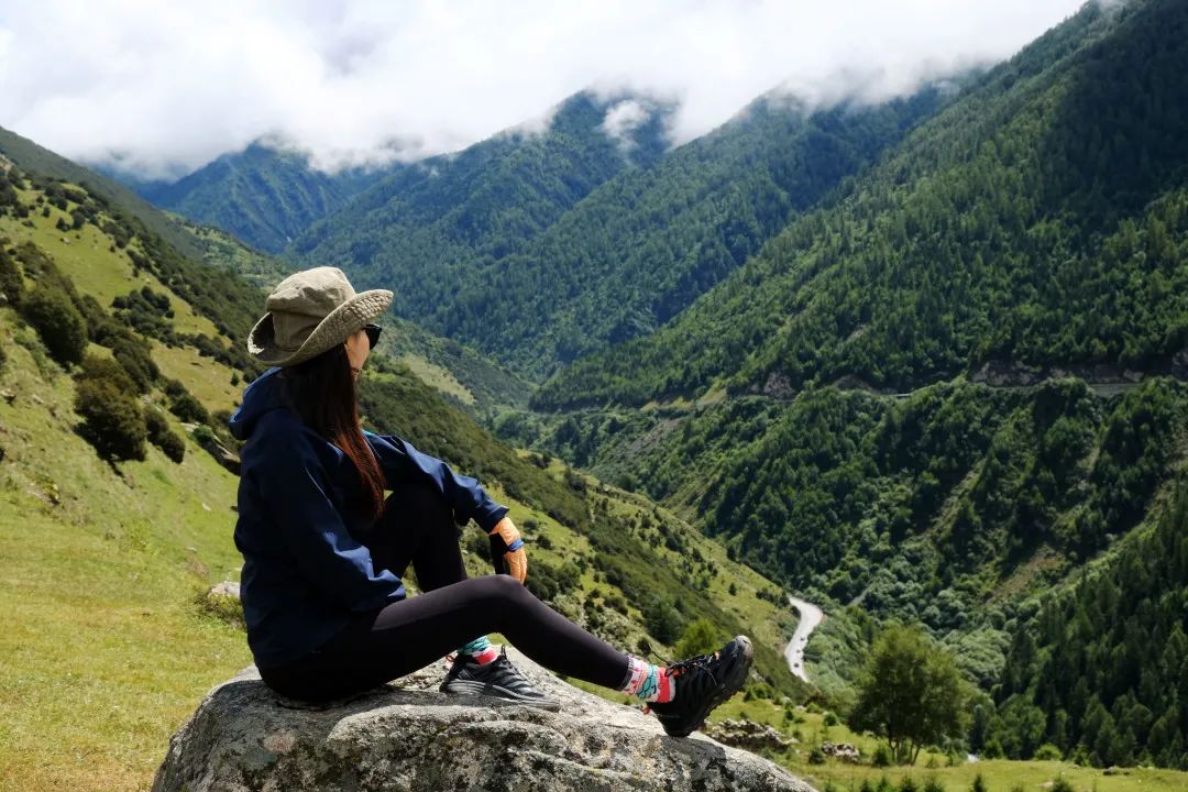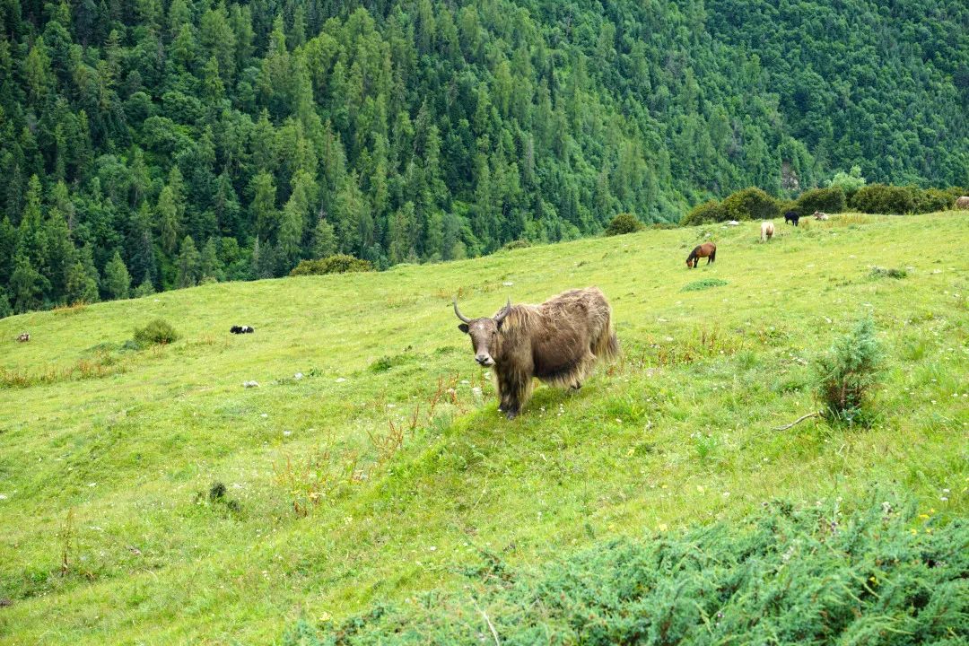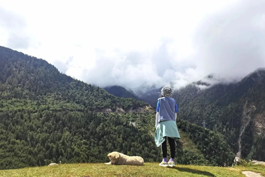 一开始带着刚从城市到山野的新鲜感,绿色迅速成为视野里的主色调,看万物都觉得可爱。很快,这种新鲜感被久未运动的肌肉酸痛所替代,连同高反一起,清晰地传达到每一根神经末梢,大脑和四肢分离,往前走似乎变成了一种机械运动。