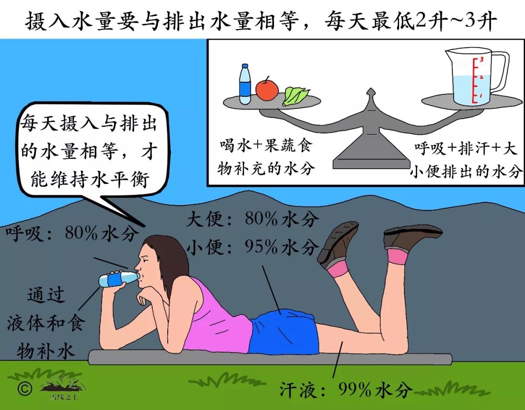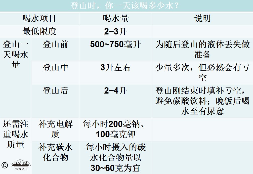 首先你应该知道人喝水的最低限度,也是你登山饮水安全的最低保障。