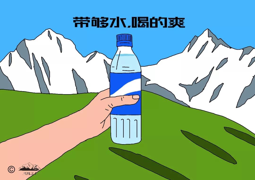 比如早上起床时就喝水,经过山下商店时买水喝,或者在山下泉水处提前补水。