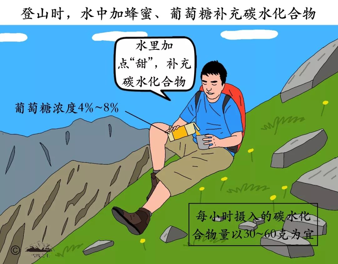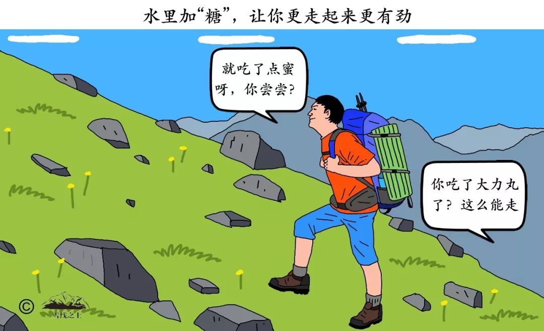 在登山徒步中,身体的新陈代谢比较快,从饮水和食物中摄取的碳水化合物会优先被分解为身体功能,很快为人体供能,迅速提供热量,让人更能走。