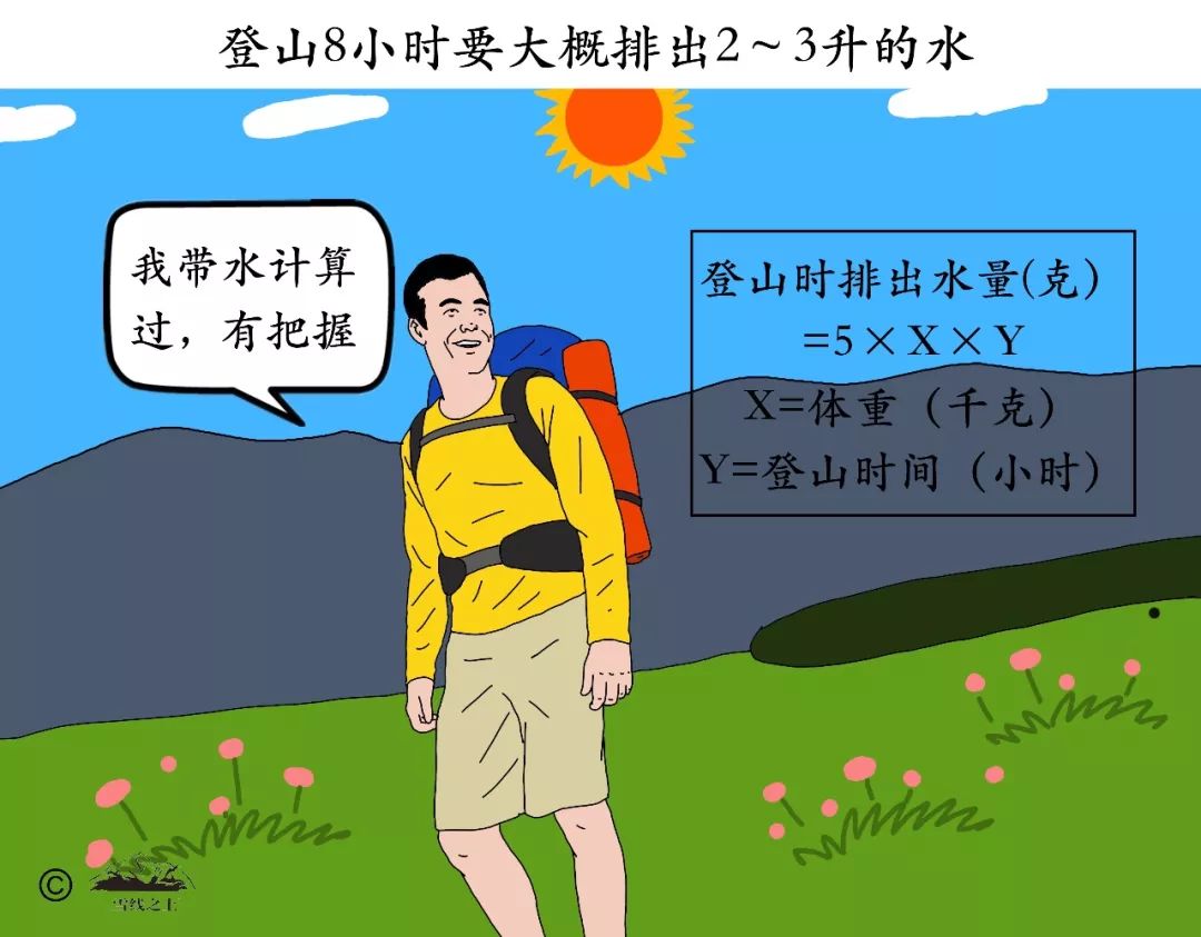 登山中的排出水量是可以计算的,山友们可以据此安排自己的补水量: