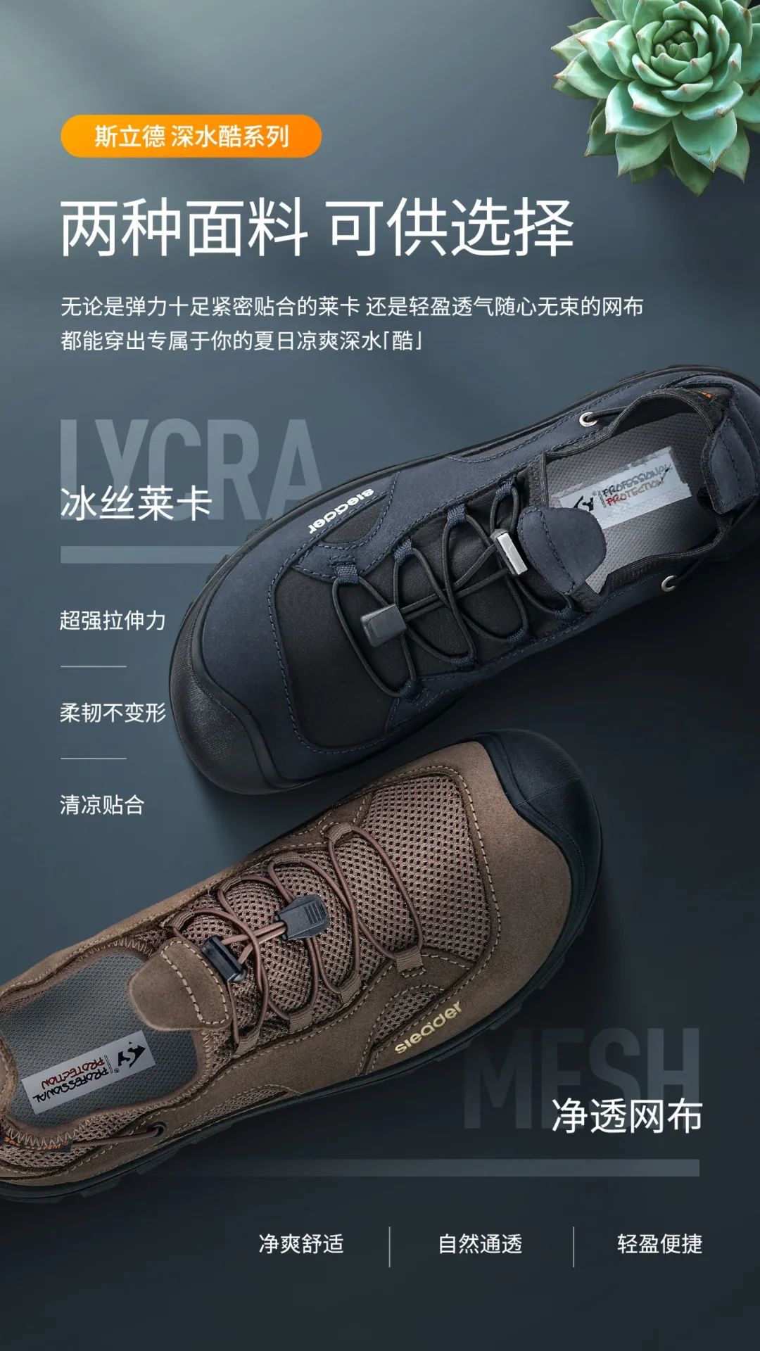 斯立德深水酷,适合于多种运动场合, 无论你是徒步爱好者,还是登山爱好者,乃至喜欢骑行的朋友都是绝佳选择,夏天办公室也可以穿哦!哪怕登山、徒步途中需要溯溪,也可以迅速将水排干,跋山涉水一双足矣!