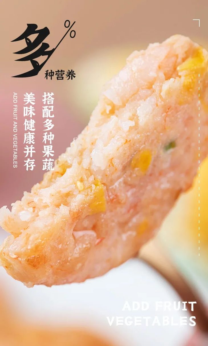 虾肉配果蔬,真有大虾仁 ,肉眼可见大虾仁,鲜香Q弹,南北白虾人工去杂(去壳去线),搭配多种果蔬(玉米粒,荸荠),营养均衡