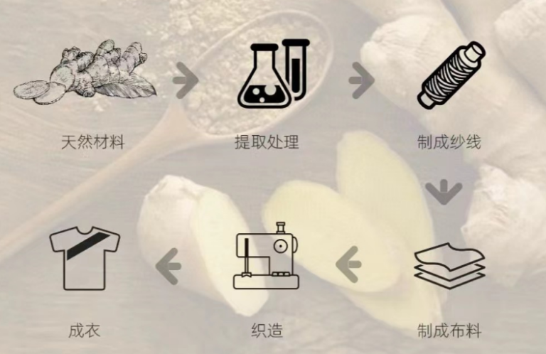 当身体与面料产生摩擦时,人体的湿气和生姜精华产生反应,释放热量。