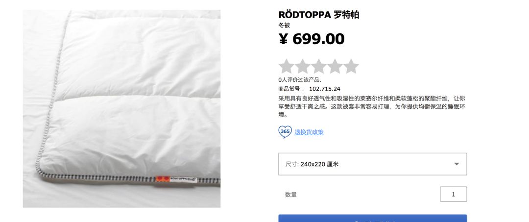 前几天在宜家看到在售的冬被,只是普通的化纤被哦,就要699一条。