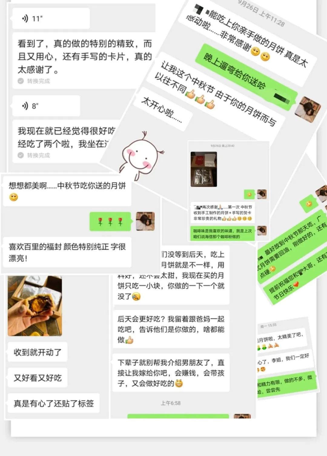 不过一盒小小的月饼,礼物微薄,我却收到了朋友们如此用心的回复,感谢你们,给我惦记的人带去幸福感,我也倍感幸福