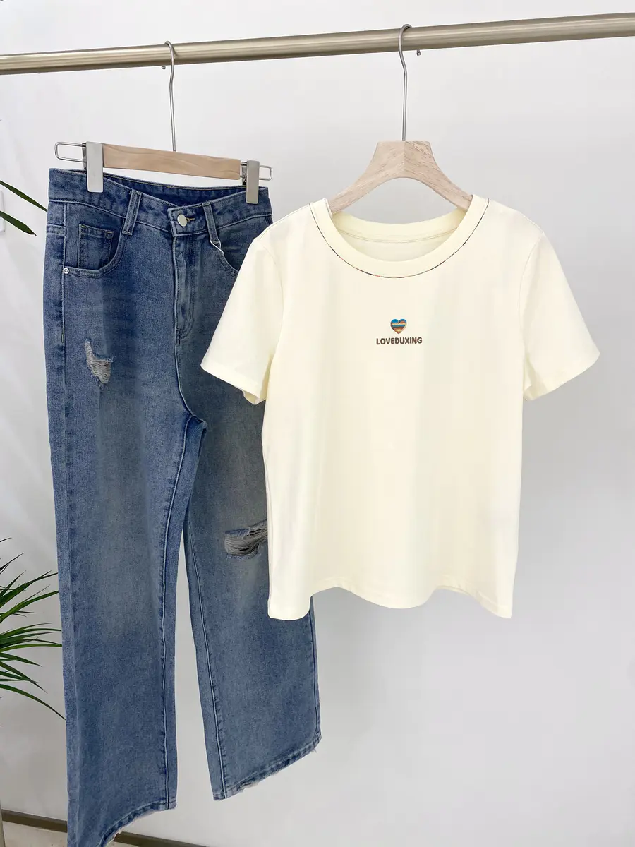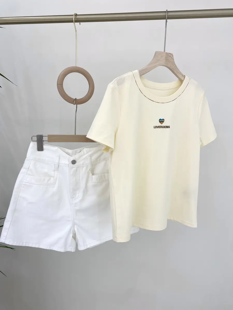 奶黄色系搭配白色最是清新,或者搭配官搭的破洞牛仔长裤,也会非常青春少女~