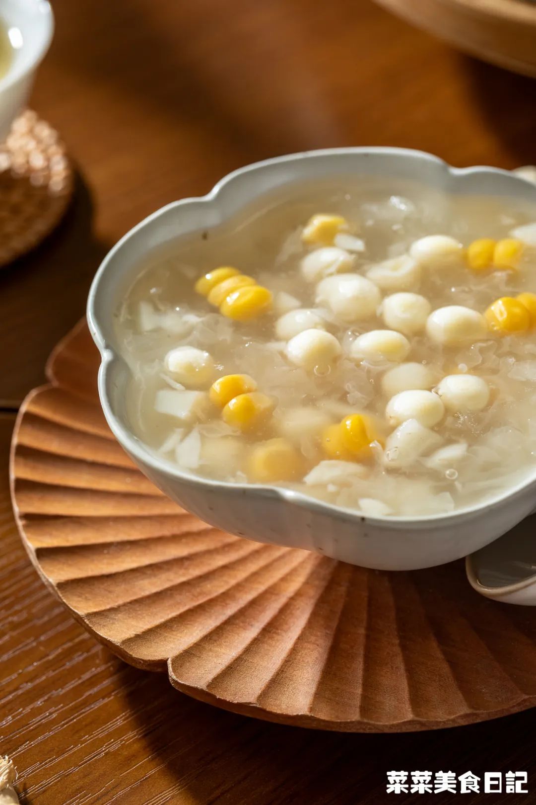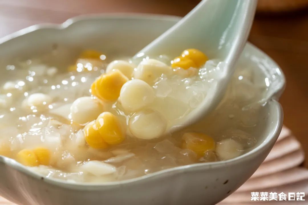 鲜银耳掰碎加水、冰糖炖10分钟至软糯,加入马蹄、玉米、鸡头米煮1分钟,加入1-2大勺马蹄粉水调到自己喜欢的稠度关火