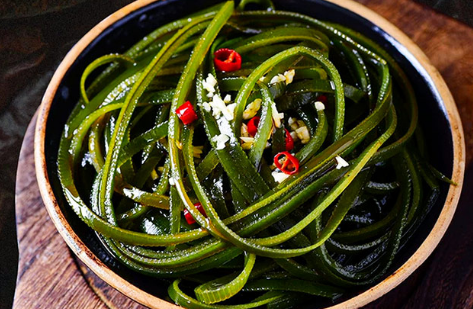 海带是一种营养价值很高的蔬菜,脆嫩可口,味道鲜美,是一种在低温海水中生长的大型海生褐藻植物,有“长寿菜”、“海上之蔬”、“含碘冠军”的美誉。