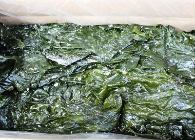 盐渍海带,就是以新鲜海带为原料,采用盐渍锁鲜,需要用水浸泡1-3个小时去除咸味,再根据自己所需进行切丝、切块。