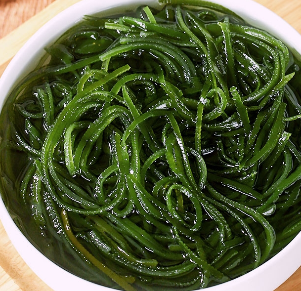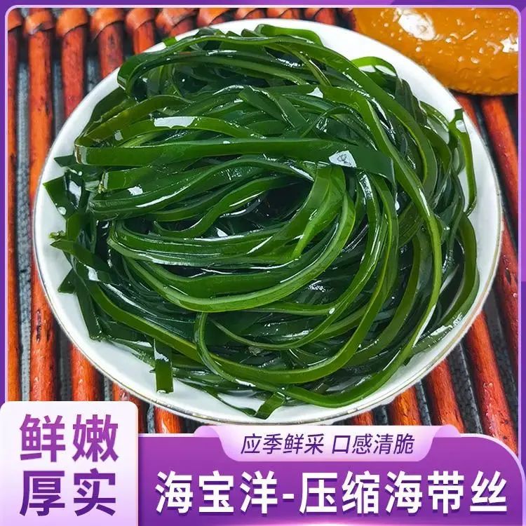 还有盐渍海带丝,它和盐渍海带的区别是带回家只需要浸泡清洗,就可以进行制作了。