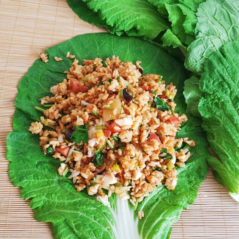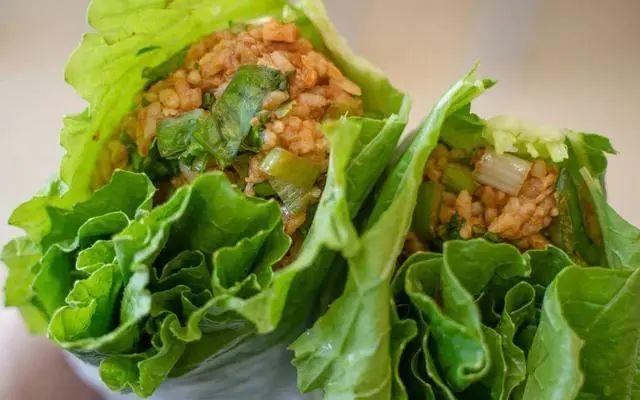 它就是东北大饭包,一个能够撑起东北人一年四季的主食。制作很简单,就是将小葱碎、黄瓜碎、菜叶、土豆泥、花生米等食材与米饭和酱料搅拌在一起,包在白菜叶或者生菜叶中就完成了。